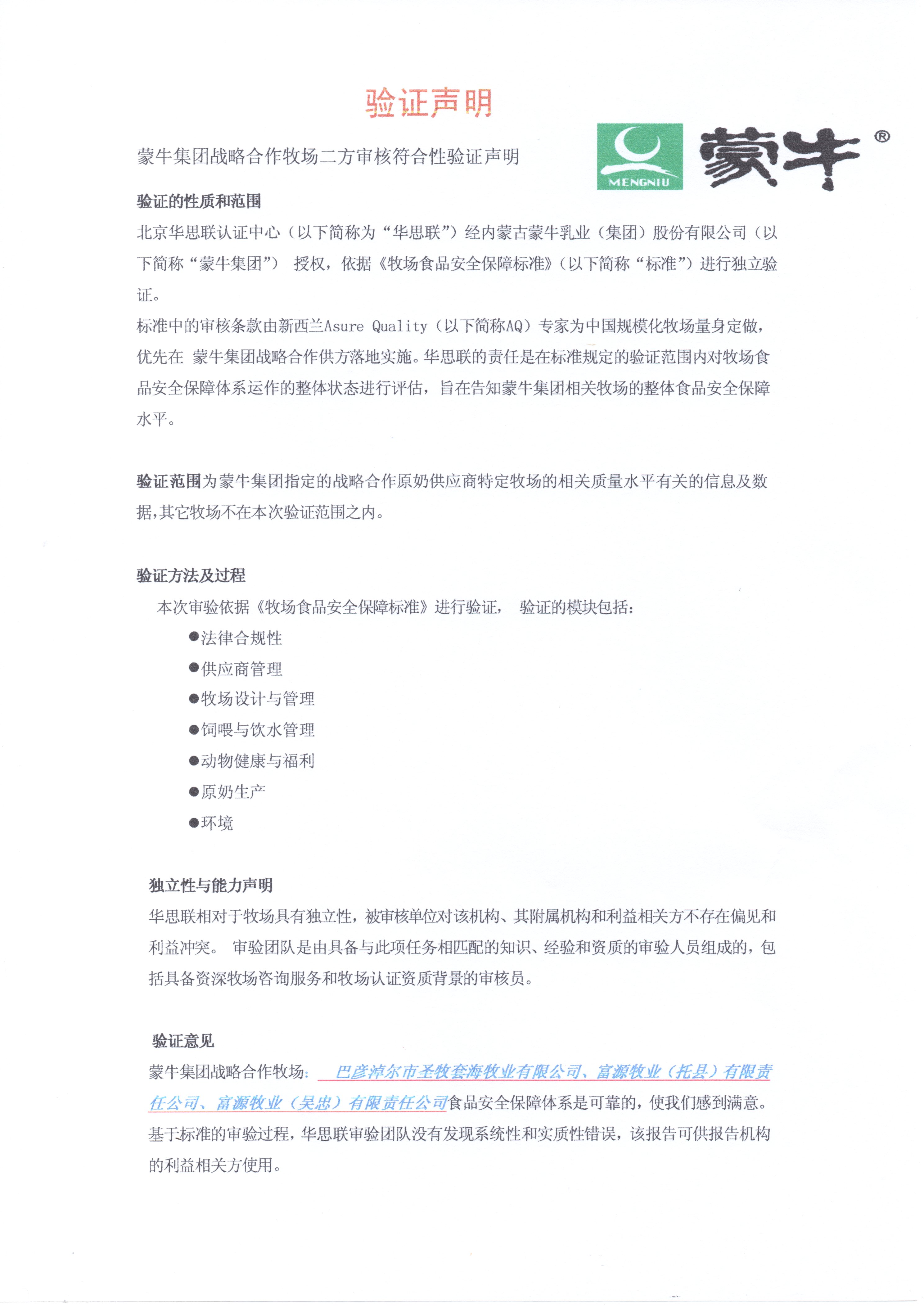 自2015年始,蒙牛集团即授权我中心按照新西兰Asure Quality(以下简称AQ)专家为中国规模化牧场量身定做的《牧场食品安全保障标准》,对其合作牧场进行二方审核。目前,我中心启动了2016年新一轮审核工作,协助蒙牛集团对其供应商巴彦淖尔市圣牧套海牧业有限公司、富源牧业(托县)有限责任公司、富源牧业(吴忠)有限责任公司进行了二方现场审核工作。