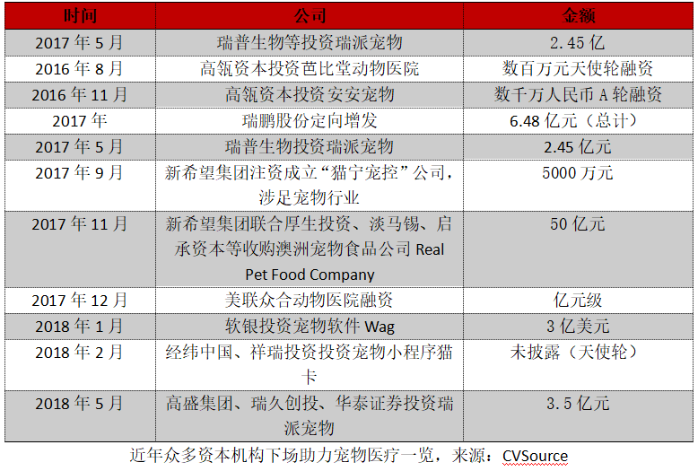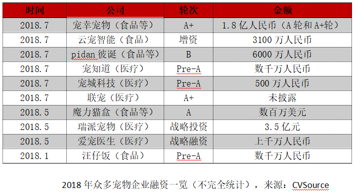 据不完全统计,2017年各大资本机构对宠物行业的投资加起来突破80亿人民币,上市公司新希望集团、瑞普生物、瑞鹏股份...以及资本机构如高瓴资本、经纬中国等纷纷下场。2018年过去大半,上半年资本市场对于宠物行业的关注依旧,甚至更加火热,不仅融资频率更高,而且金额较于以往有明显的提升,有分析机构表示,2018年宠物行业的资本将创新高。