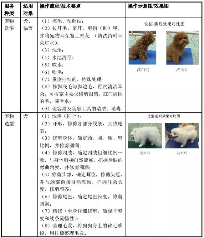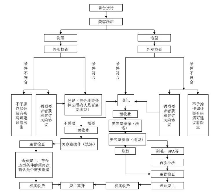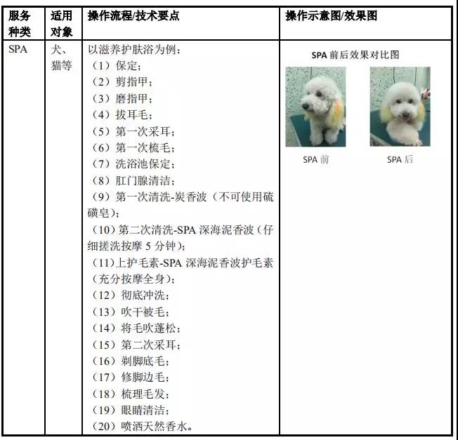 下图为瑞鹏涉及宠物美容洗护业务的操作流程与技术要点: