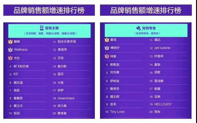 宠物品牌销售额增速排行榜:进口主粮增速明显