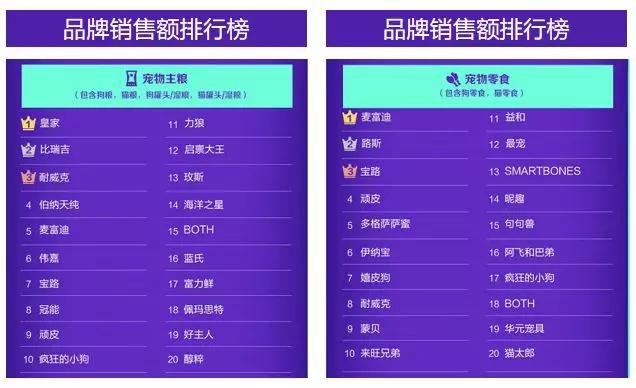 宠物品牌销售额排行榜:皇家在主粮、麦富迪在零食领跑