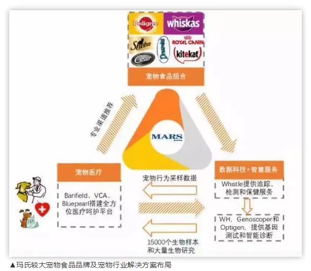 目前玛氏集团已经拥有41个,宠物食品的品牌。2017年玛氏以大约77亿美元收购宠物健康护理服务提供商VCA Inc。