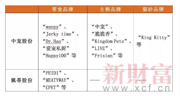 而国内企业佩蒂和中宠在零食、主粮领域也拥有很多品牌。