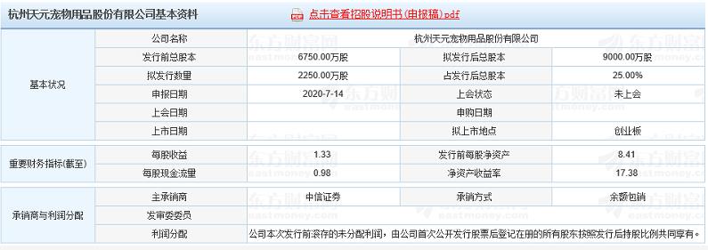 7月14日晚间,创业板改革并试点注册制再受理10家企业,获受理的拟IPO企业中,天元宠物赫然在列。