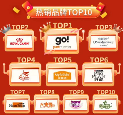 战报显示,在细分品类排行榜中,猫粮品牌排行榜TOP 1品牌是go!;狗粮品牌排行榜TOP 1是伯纳天纯;医疗保健品牌排行榜位列第一的是大宠爱;而犬猫零食排行榜上,麦富迪和珍致占据了榜首;pidan则成为了猫砂品牌排行榜上的TOP 1;此外,小佩还得到了洗护日用品牌排行榜和出行玩具品牌排行榜两个榜首;水族品牌方面,森森仍占据首位。