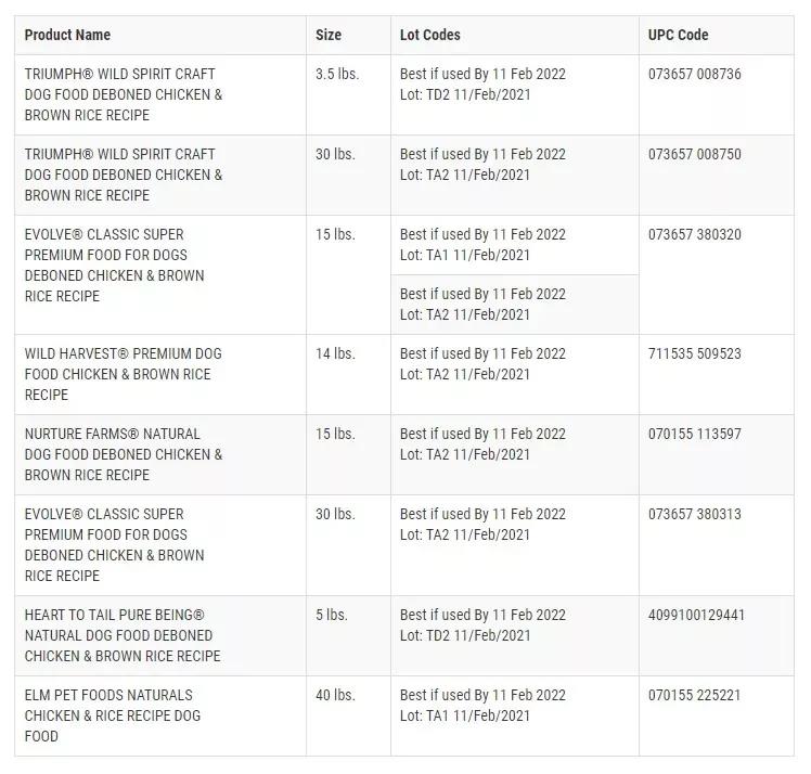 Sunshine Mills, Inc 正在自愿召回在全国零售店销售的一系列产品,因为这些产品中的毒素如果大量食用会对宠物有害。阳光磨坊的狗粮安全问题一直存在。在农业部门发现沙门氏菌后,该公司曾在6月份撤下了4个品牌的狗粮。同时,由于同样原因,该公司还在2020年10月曾召回了20个品牌的狗粮。此次召回包括以下产品: