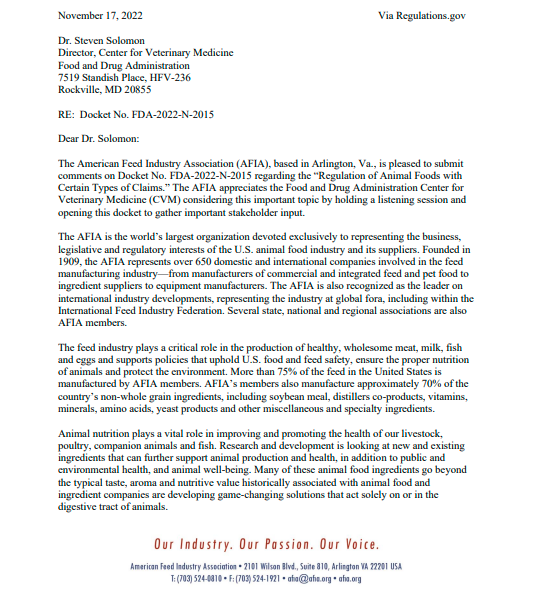 根据AFIA的说法,CVM有权更改相关审查政策。并建议采用食品添加剂申请(FAP)、一般公认安全(GRAS)项目和美国饲料管理协会(AAFCO)的成分定义。