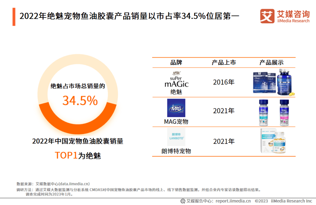 2022年绝魅宠物鱼油胶囊产品销量以市占率34.5%位居第一