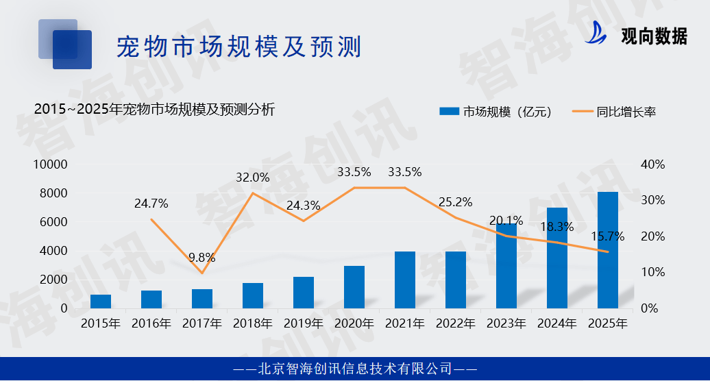2023年宠物市场规模将达5928亿元,同比增长20.1%,预计2025年市场规模达8114亿元。这一增长势头显示了人们对宠物食品的消费需求不断增加,市场潜力巨大。