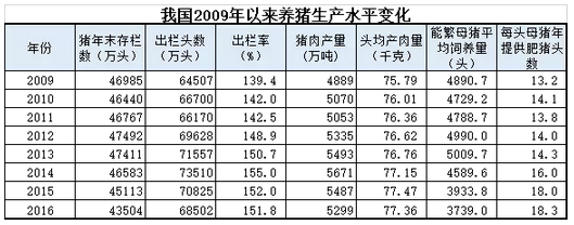 我国2016年年末生猪存栏43504万头,生猪出栏68502万头,出栏率达152%