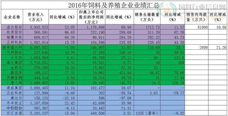 2017年前三季度各大饲料和养殖企业业绩报告: