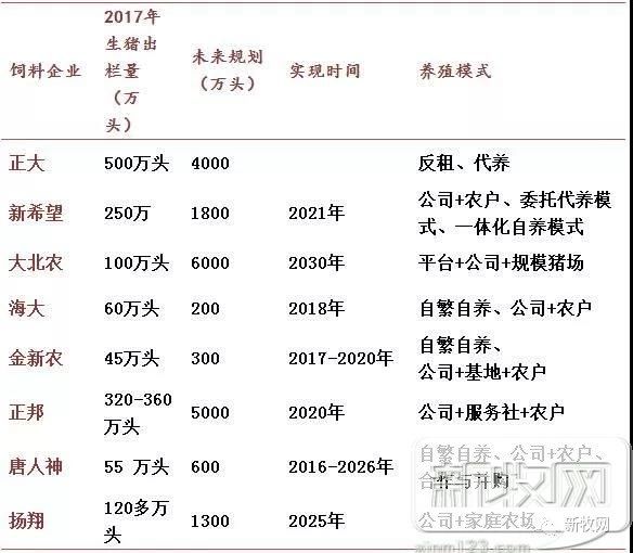 2017年,饲料企业仍然处于疯狂投资养猪的浪潮中。与去年不同的是,饲料企业养猪的产能释放更加明显。正大与去年相比增加生猪出栏200万头,正邦、新希望增加100万头,大北农增加80万头。