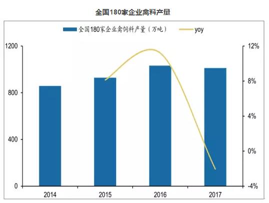 全国180家企业禽料产量
