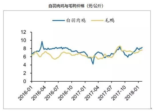 由于2017年上半年禽流感的冲击,禽类大量死亡,导致禽产业链整体处于低迷水平,从灾害中恢复后,禽类供应降低,导致供不应求,从而禽价格开始上涨。根据数据,截止到2018年1月份,我国白羽鸡和毛鸭价格同比分别大幅上涨44.5%和27.7%,主产区鸡蛋价格同比上涨52.56%。目前禽类养殖市场已从2017年上半年的禽流感冲击中恢复过来。认为肉禽与禽蛋价格的上涨势必会带动禽养殖量的增加,激发养殖积极性,从而提高禽类饲料的需求量。