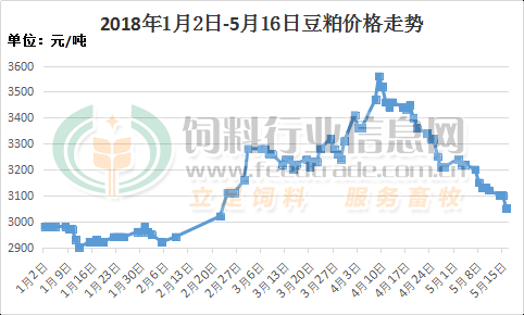 近两周来,国内豆粕期现货市场一路下跌,5月15日连粕夜盘直接跌破3000元/吨下探至2950元/吨点位,9月期约跌幅高达3.06%,5月16日早盘低开至3028元/吨,最低则一度下探至2932元/吨,跌幅高达3.6%。国内主流厂商豆粕价格则全线实收3000大关,降至2840-2950元/吨一线,较上月同期跌幅高达350-400元/吨。盘面价格将之前贸易摩擦升温所积攒的升水基本挤出。