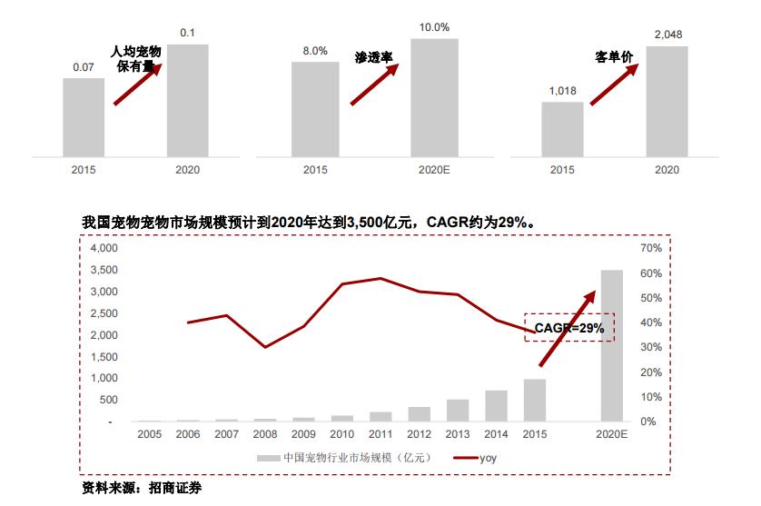 我们认为,推动中国宠物行业发展的内生驱动要素为: 1)宠物数量;2)相关产品及服务渗透率;3)客单价。 当前,三大内生驱动要素均呈现出相当低的水平,但均具备了增长的条件和时机。因此,我们认为中国宠物市场具备了快速发展的充分条件。