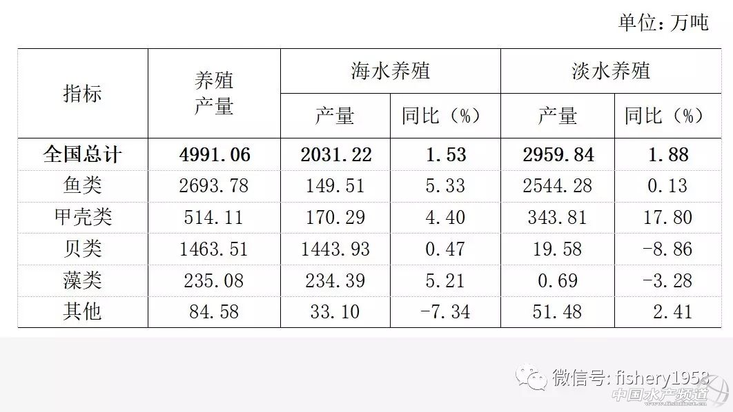 全国水产品人均占有量46.28千克,比上年减少0.09千克、降低0.19%。
