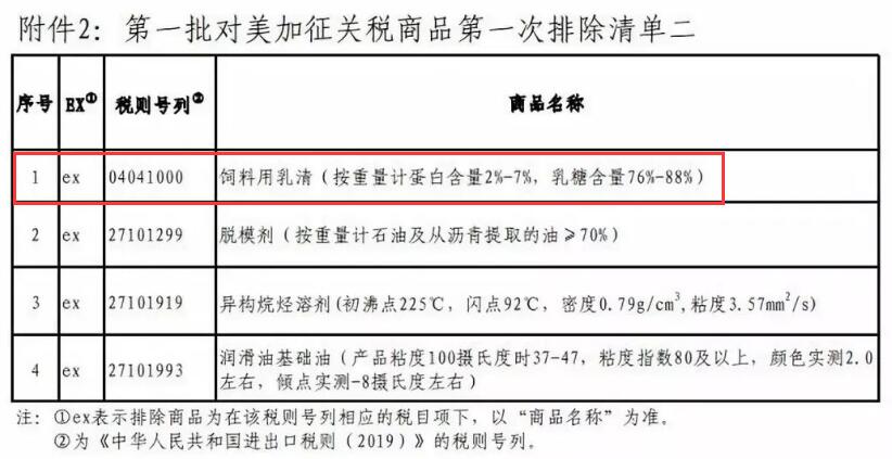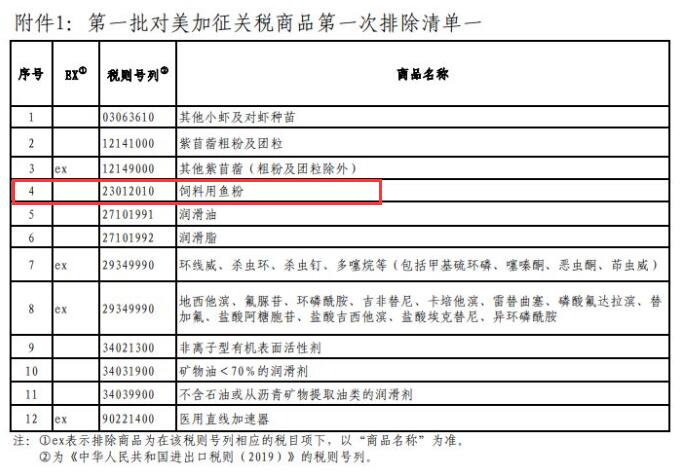 鱼粉、乳清粉列入国务院关税税则委员会公布的第一批对美加征关税商品第一次排除清单中