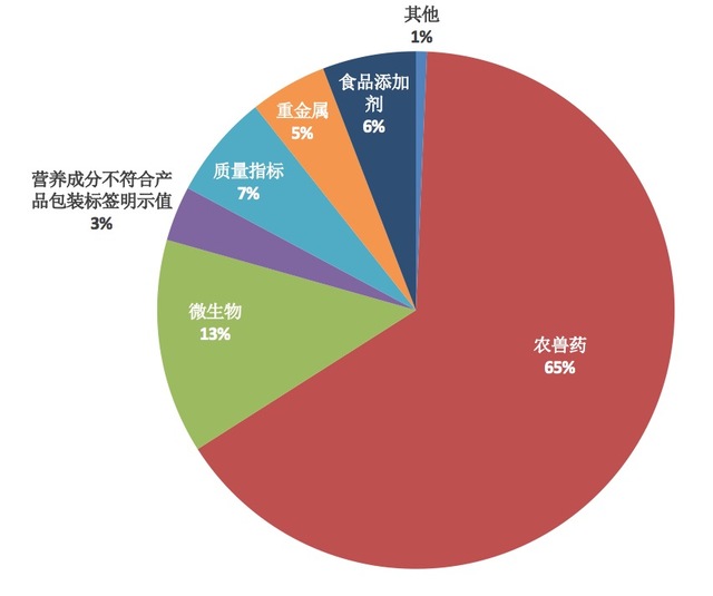 其中,农兽药残留超标占65%,超过其他种类问题的总和,共有190批次不合格食品涉及该问题。腐霉利、恩诺沙星、毒死蜱、氧乐果……这些可能让普通消费者感到陌生的物质实际上是食品生产环节的重要组成部分,用于防治植物病害、防治动物感染等问题。这些物质少量残留一般不会引起食用者的急性中毒,但长期食用会对人体健康产生一定不良影响。
