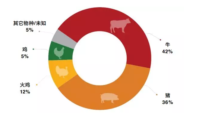 牲畜生产中抗生素的过度使用导致了更多耐药菌的出现。在美国销售的医用抗生素中,有70%以上用于食用动物(如图)。许多肉类生产商通常将这些药物饲喂或注射给未患病的动物,以促进更快的生长或预防因工厂化生产而引起的疾病;尽管这对公共卫生构成了严重威胁,但美国仍缺乏有效的法律和政策来防止农业生产过度使用抗生素的现象。