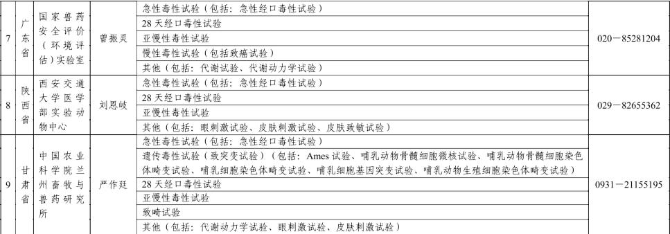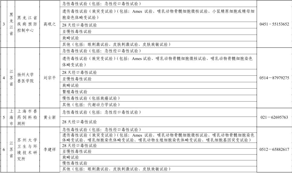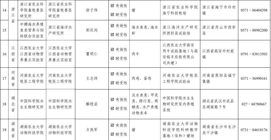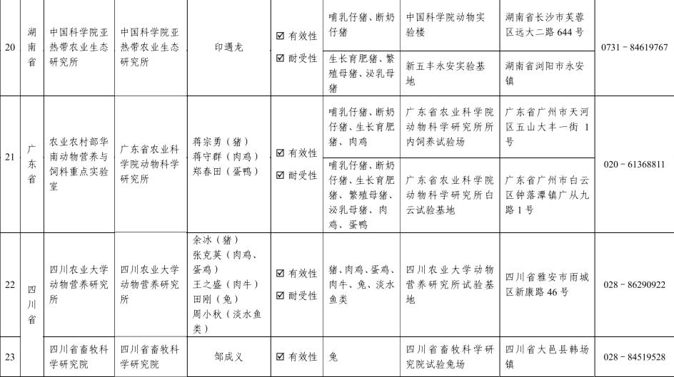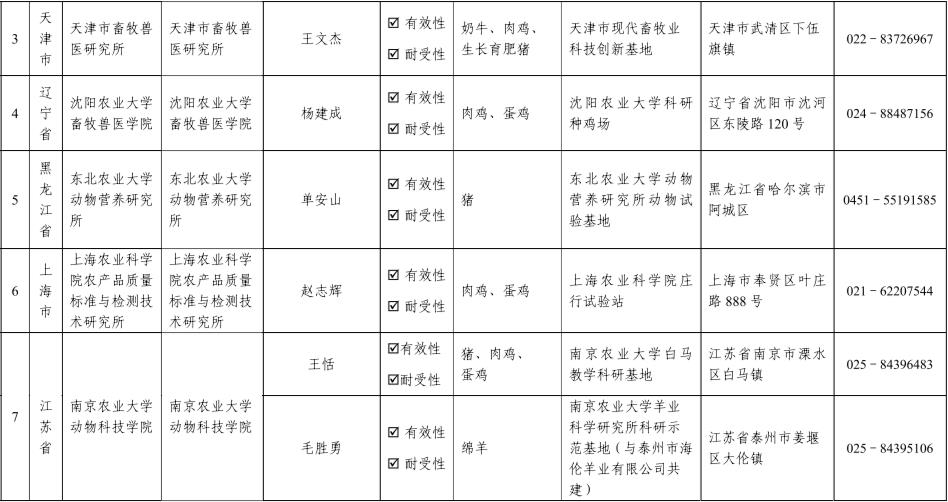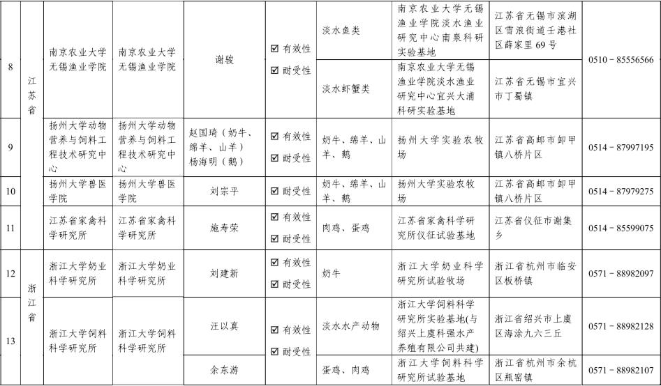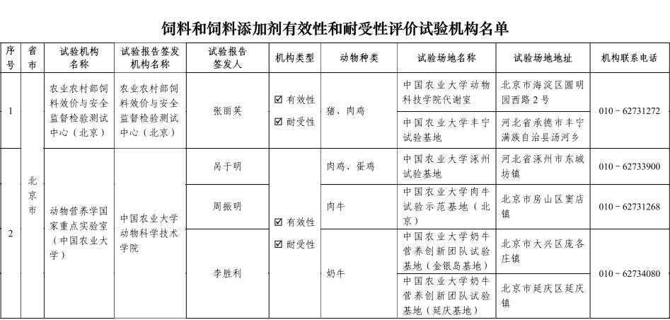 饲料和饲料添加剂有效性和耐受性评价试验机构名单