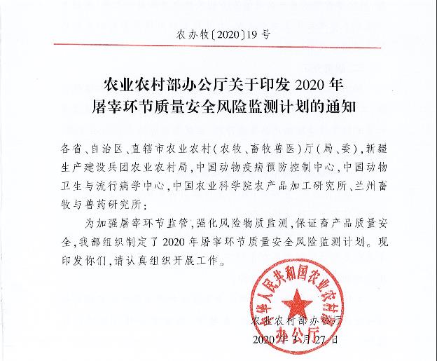 2020年屠宰环节质量安全风险监测计划(农办牧19号).pdf