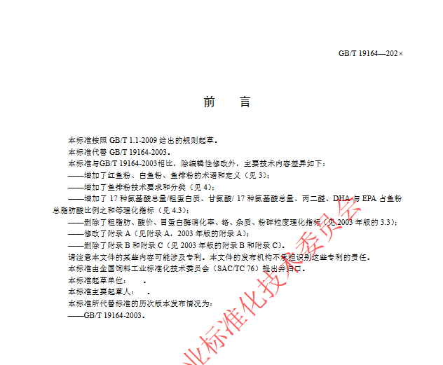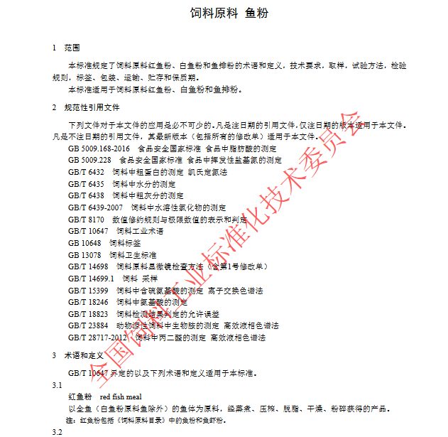 关于《鱼粉》推荐性国家标准征求意见稿已起草完成,按照《国家标准管理办法》的有关要求,现公开征求意见。