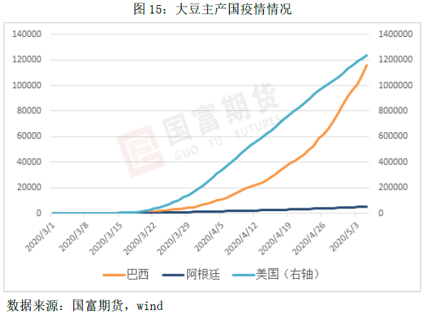 从目前看,美国、巴西、阿根廷的疫情形势比较严峻,中国进口大豆的供应链将会受到影响 。