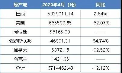 ▲2020年4月大豆进口分项数据