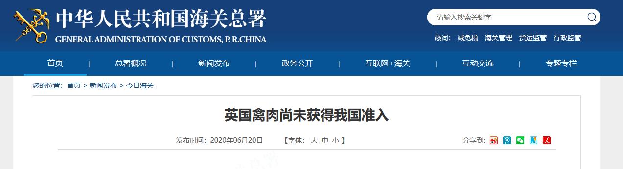 近日,英国1家禽肉企业确诊58例新冠肺炎病例引起广泛关注。海关总署确认,英国禽肉尚未获得我国准入,不能向中国出口。