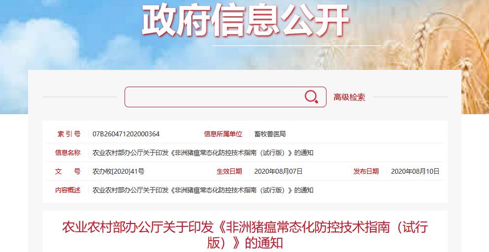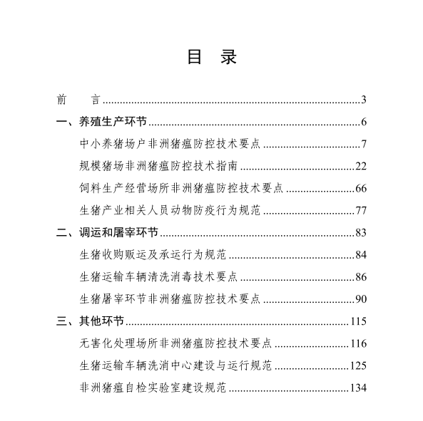 为进一步强化非洲猪瘟常态化防控,督促指导各地和各类防疫主体全面落实防控措施,农业农村部组织制定了《非洲猪瘟常态化防控技术指南(试行版)》。 针对非洲猪瘟防控新形势,农业农村部及时调整优化防控策略,建立常态化防控机制,其中一项重要任务就是针对当前存在的问题,制定相应的技术标准和规范,指导生产经营主体查漏补缺,有效化解非洲猪瘟发生风险。