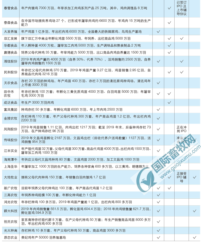 年中国市场肉鸡企业五十强,温氏股份、圣农发展、禾丰牧业分别居前三位。