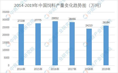 我国饲料工业起始于上世纪70年代,经过数十年的发展,饲料工业获得了跨越式发展。我国从1991年起成为仅次于美国的第二大饲料生产国,从2012年起饲料产量已经连续7年位居世界第一,是名副其实的世界第一大饲料生产国。不过近年来我国饲料产量增速开始趋于下降。数据显示,2018年我国饲料产量为24213万吨,同比下降14.94%。2019年中国饲料产量达26184万吨,与2018年相比略有上升。