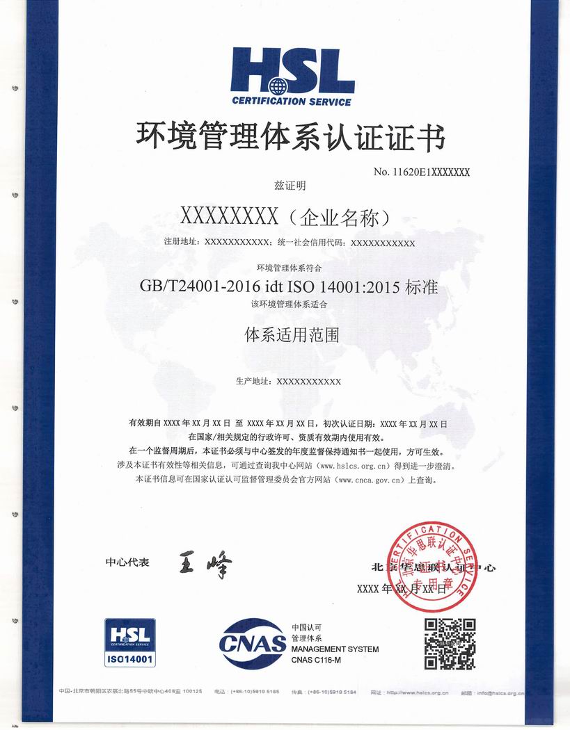 环境管理体系认证证书