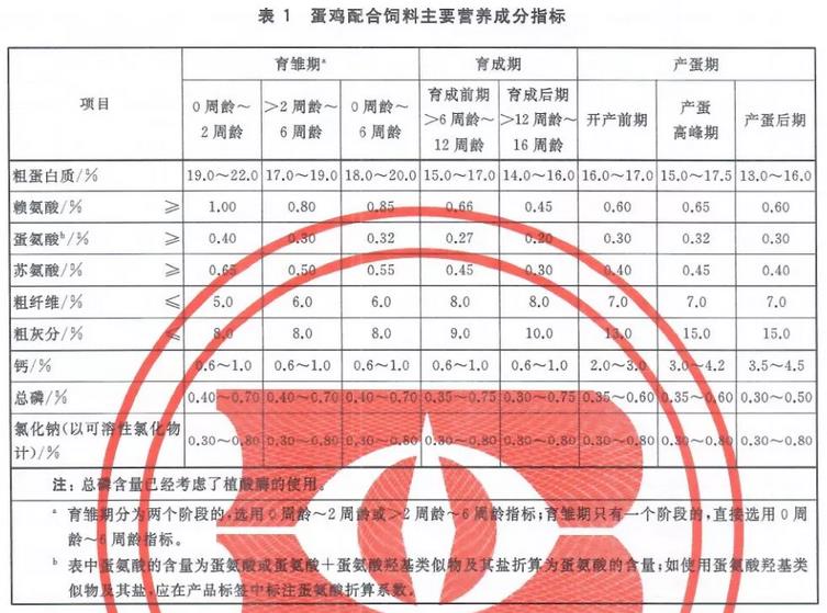 在经过了多方调研,收集了国内主要大型蛋鸡,肉鸡,黄鸡、肉杂鸡配合饲料生产企业的回馈信息后,国标委发布了GB/T 5916-2020《产蛋鸡和肉鸡配合饲料》标准,并于2021年4月1号正式实施。GB/T 5916-2020与上一版本不同,主要提出的营养成分适龄按需配比,低蛋白日粮,排泄污染物控制等原则。
