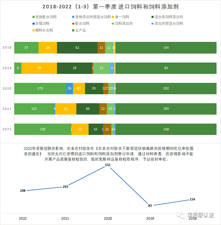 小编根据农业农村部公告统计,2022年第一季度在我国获得农业农村部批准登记或续展登记的进口饲料和饲料添加剂产品获有248个sku。