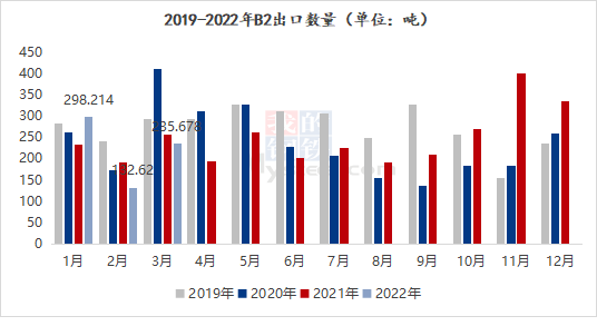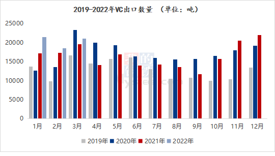 中国是维生素最大的出口国之一,维生素产品在全球市场上有较大的竞争优势,除了供货稳定外,还与低廉的价格有关。维生素生产企业会把更长远的目光放在降低生产成本、提高产品质量和专业技术团队建设方面。据海关总署数据统计,中国维生素B2出口占比仅有0.99%,2010-2021年,中国维生素出口总量大致呈两个发展阶段。2010-2013年,中国维生素出口量在18-19万吨之间上下波动:2014-2021年,中国维生素出口量呈现快速上涨势头,其出口量从2013年的1969万吨,上升至2021年的3000多万吨。从出口结构来看,出口大头主要是维生素C及维生素E,而维生素B2的出口不足1%。据海关数据统计,截止2022年3月环比增幅13.92%和14.92%。