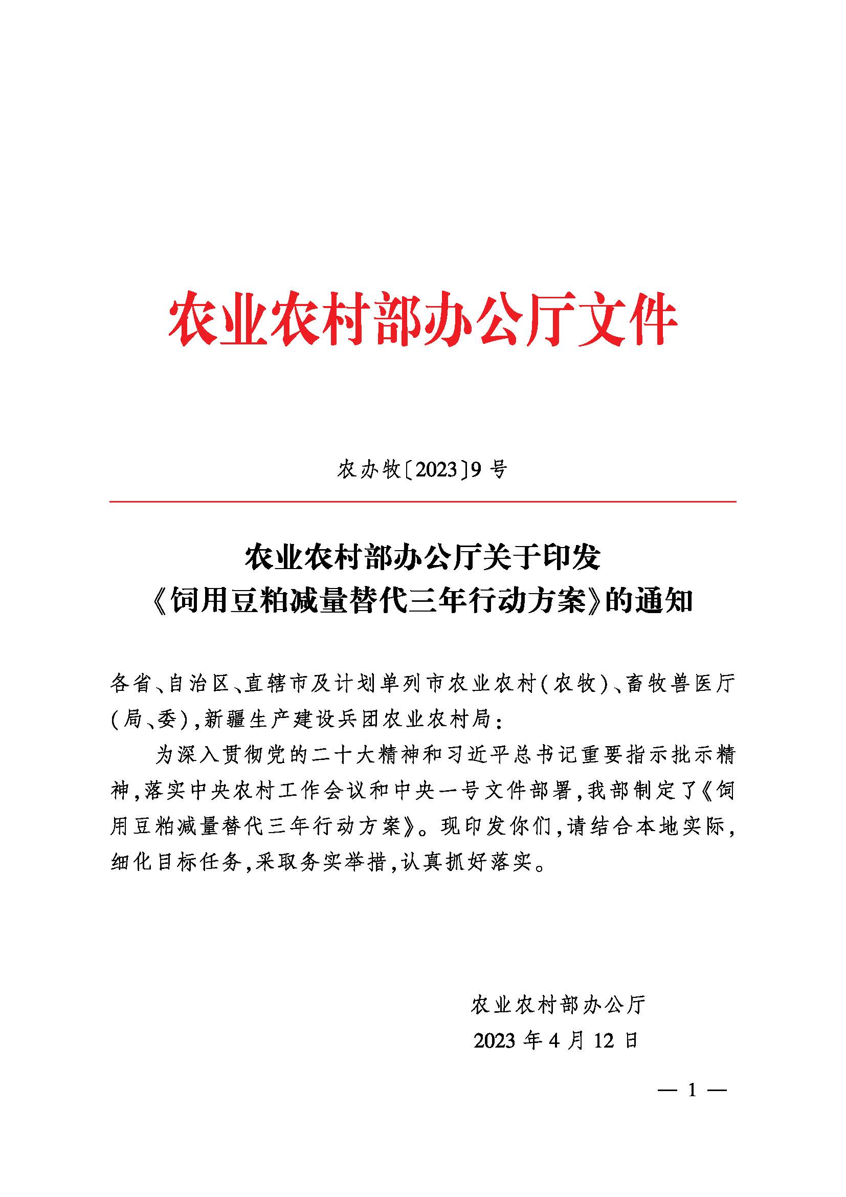 农业农村部制定了《饲用豆粕减量替代三年行动方案》