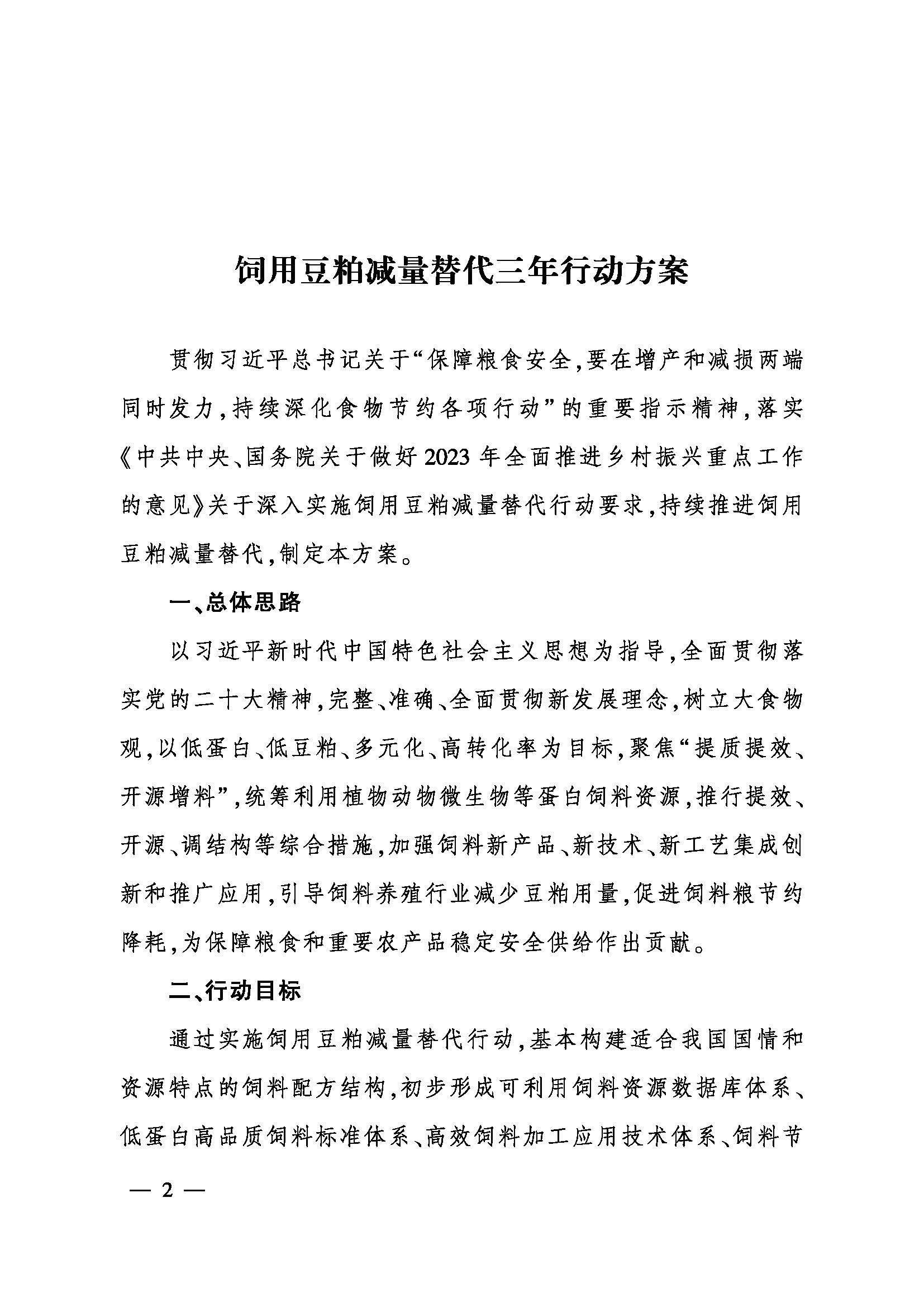 农业农村部印发《饲用豆粕减量替代三年行动方案》