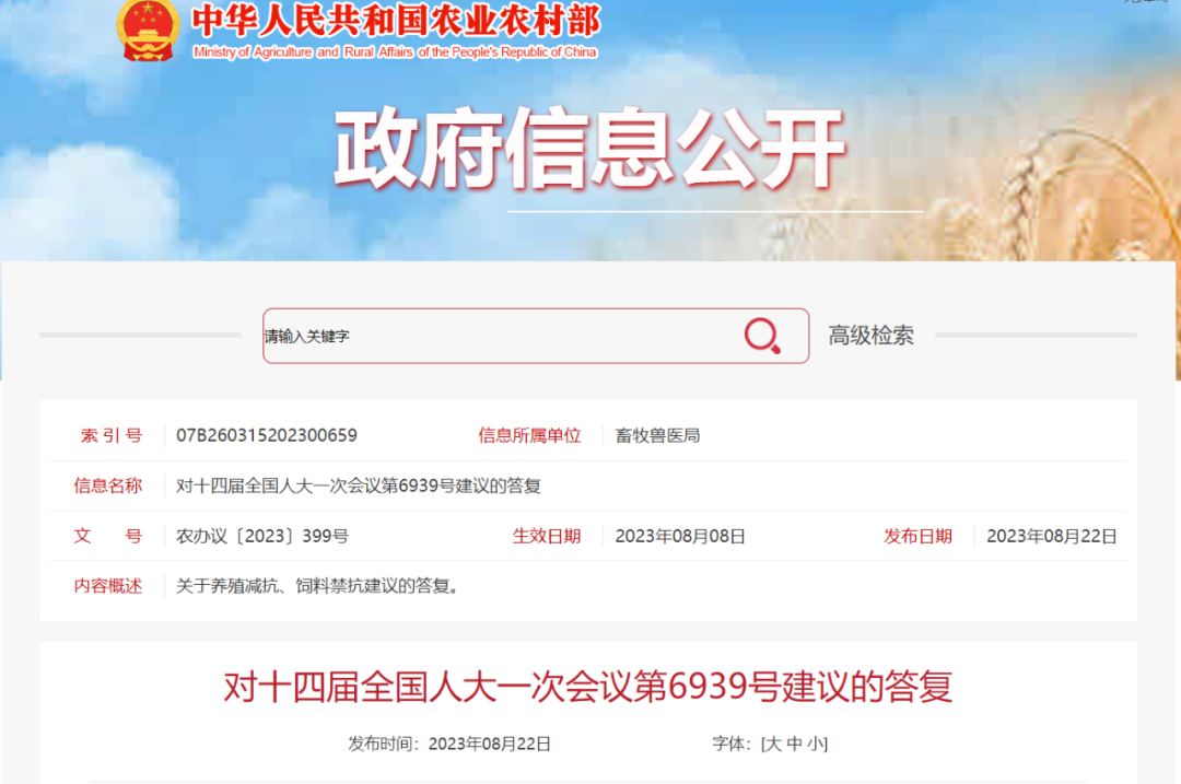为维护我国动物源性食品安全和公共卫生安全,农业农村部于2019年7月发布公告,决定停止生产、进口、经营、使用除中药外的所有促生长类药物饲料添加剂,并对相关管理政策作出调整。为落实“饲料停抗、养殖减抗”要求,农业农村部持续推进兽用抗菌药使用减量化行动,组织开展健康养殖综合技术方案示范推广,优化完善新饲料和新饲料添加剂评审制度,加快扩充高效安全饲料原料和饲料添加剂品种,在尽量减少兽用抗菌药物使用量的基础上,保持了畜产品稳定安全供给。