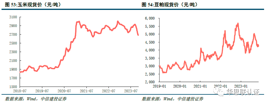 明年豆粕价格或有下降可能。巴西大豆种植面积增加,大豆丰产概率大:阿根廷降水充足,阿根廷大豆产量或有所恢复:美豆方面,USDA11 月报告中上调美豆新作单产,供给端或进一步宽松。综合看 23/24 年度大豆供应较之前年份宽松。需求端看,我国压榨消费有望小幅增长。结合供需形势看,明年豆粕价格或有下降可能。