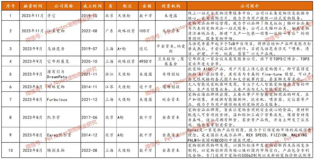 2023年已过去,虽有波折困难,但宠物行业仍有不少融资事件发生,这些企业的创新发展,也在一定程度上反映行业变化特征。