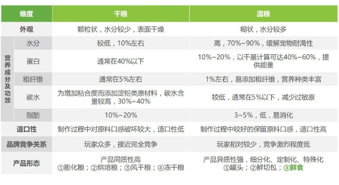 其中鲜食即指鲜粮,是湿粮中更精细的赛道,强调食材新鲜,原材料肉眼可见,没有经过深度加工。鲜食与鲜切包和罐头不同的是,其保质期更短。