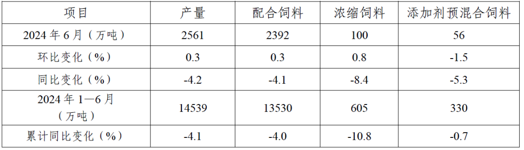 注:本数据为截至7月10日饲料企业统计数,全国饲料产量以年度公布为准。